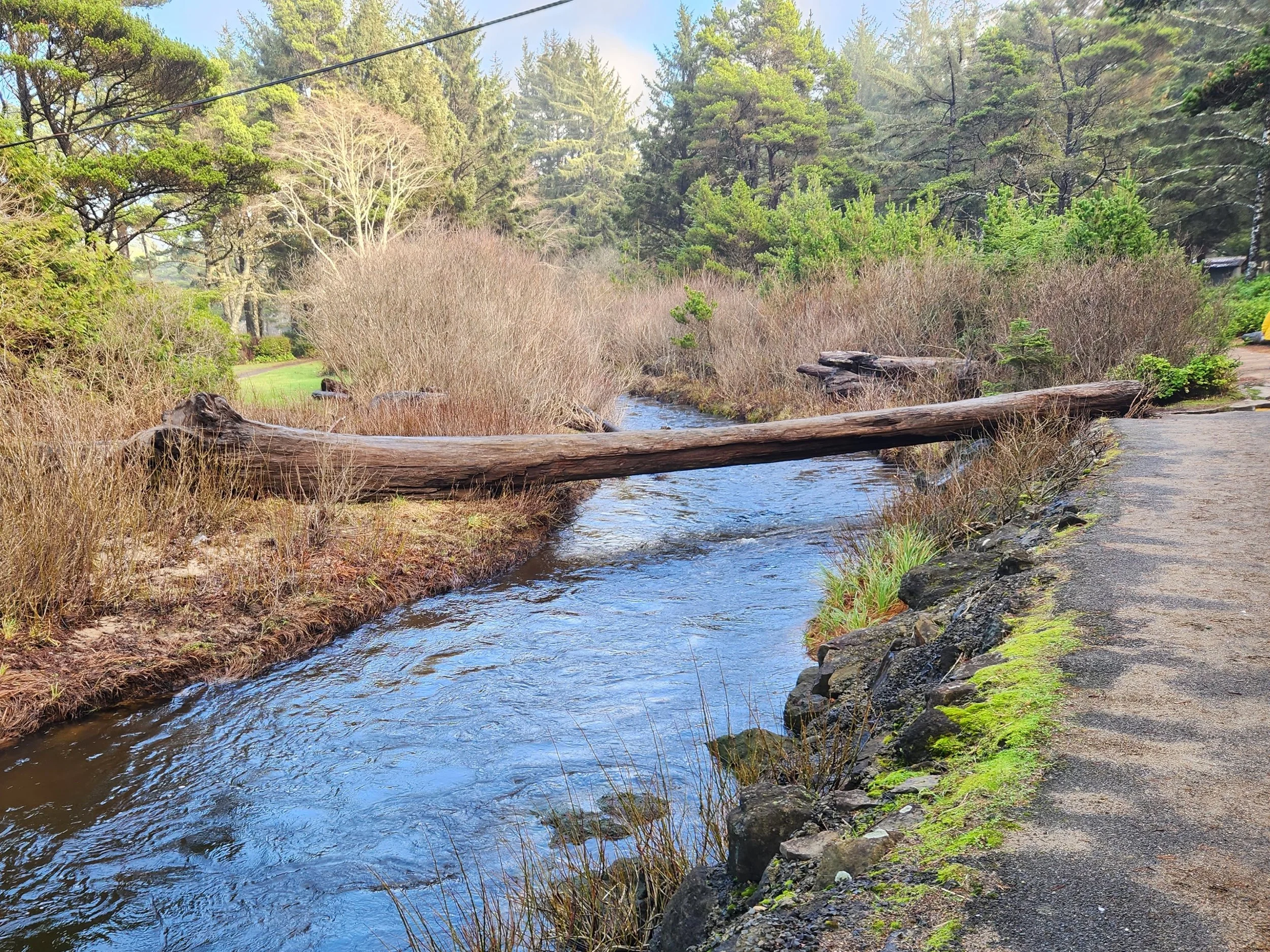 After you hit forty, official middle age, culturally we designate our milestones through our birthdays, the car we drive, the house we live in, or possibly, bucket lists. I tend to mark my milestones differently as a recent trip to the Oregon Coast underscored. You see, I found myself on the wrong side of a beach divided by a stream just deep enough, and cold enough, to act as a barrier to my crossing to the appropriate side for rock hounding. To journey back to the parking lot to cross a small bridge there would have been to admit defeat and slip in my ability to adapt. Especially since there was a perfectly good slippery log felled across its banks providing a short cut. Crossing such bridges without crawling on all fours, or head plunging into the chilly depths was a tradition for me since I was a boy camping at the age of five. If I were to prove incapable of crossing this bridge, I would indeed have to recognize I were entering the final phase of my life. I hoped to prevent this categorization by hopping on the high end of the log before heading across the barkless, damp surface to my fate. I duck-walked at first, shaking a bit before wobbling two times near the middle. The sound of the water passing underneath increased substantially as I balanced like a tightrope walker. Apparently, volume increases with the level of danger present. I took a deep breath, then charged the last ten feet before jumping onto the bank. For a time at least, I would remain middle-aged.