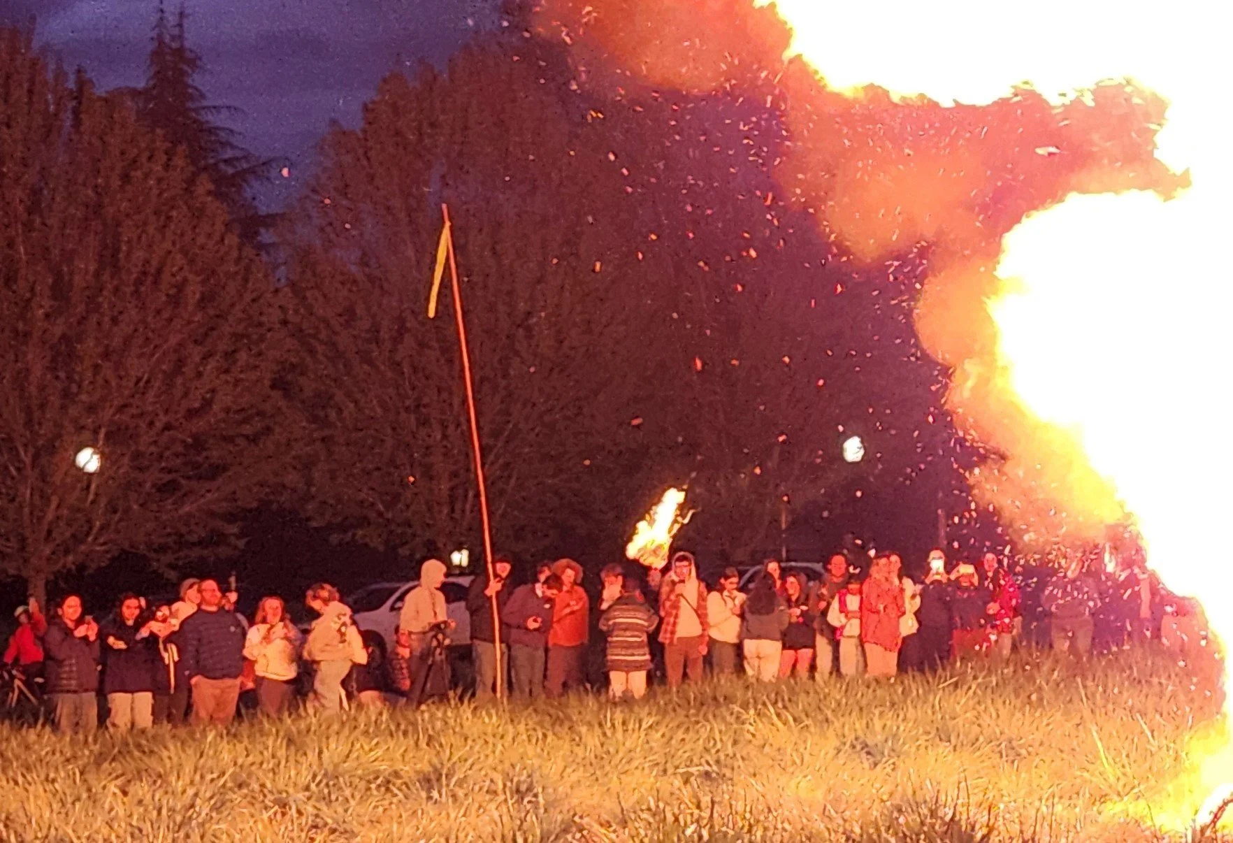 Attending the yearly, Built to Burn event at Linfield University, I discovered that the act of burning a large, student created piece of art went beyond the normal boundaries of art as I understood it, somehow, unexpectedly becoming a deeper shared experience. The hour before, as the sun stood low in the sky, a patchwork crowd of all ages and demographics, gathered slowly in the tall grass. Children wrestled and ran, students nervously discussed the day’s events, retirees rattled the keys in their pockets as some of us, including myself, waited on the torch while our shadows grew. Once darkness fell, the head of the art department approached the structure, now stuffed with kindling and notes from the crowd, accompanied by a female friend, carried the flame from the edge of the field. As they lit the fairytale-like structure, the crowd reached a crescendo of chatter and nervousness, but once the flames began to lick at the sky, everyone around the circle, suddenly became silent and reflective. I thought about events from the past year since attending the previous year’s event, and laughed to myself over lost performance opportunities that could have been a silly part of the tradition. Even the small children seemed to calm and consider a future that only the flames could reveal.