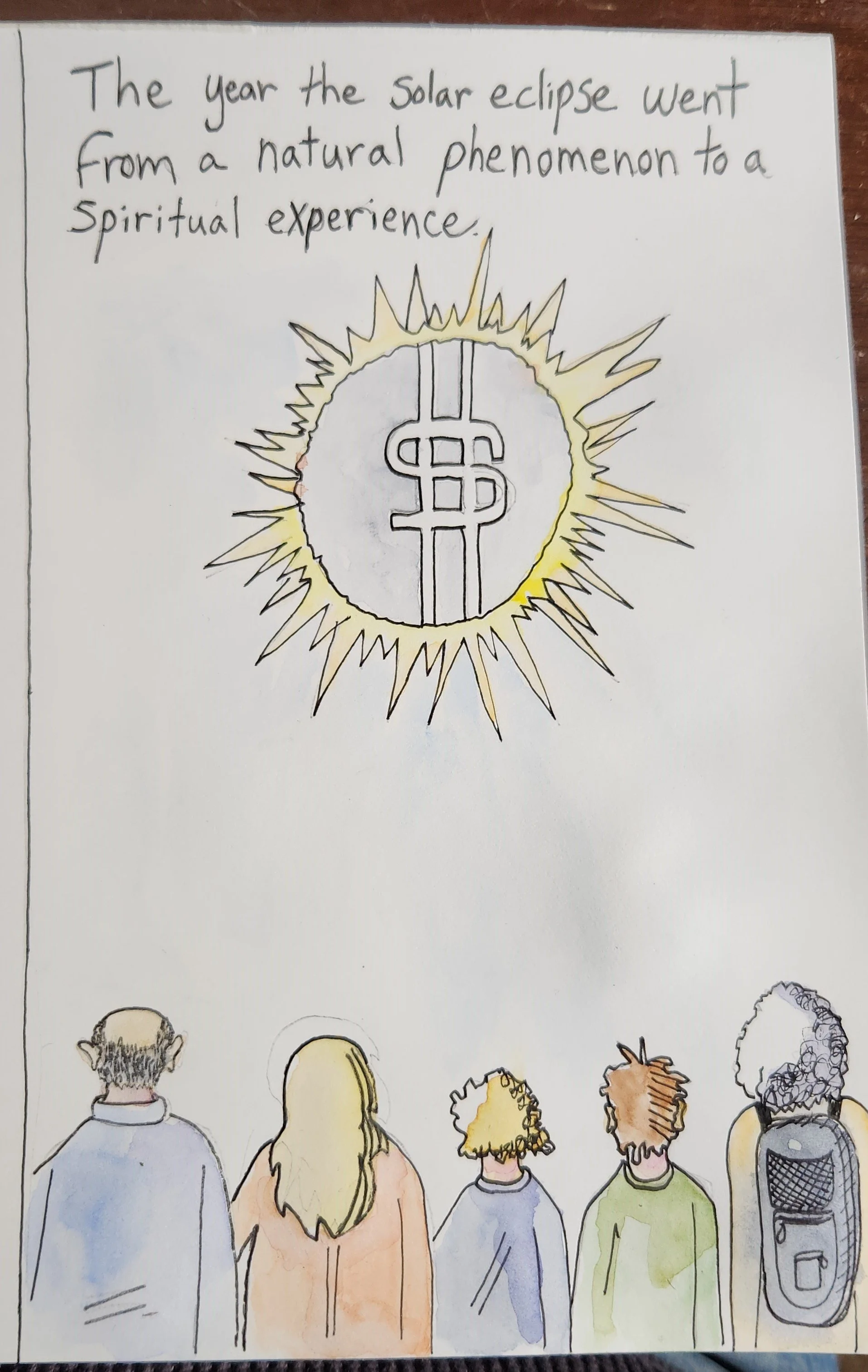 In 2017, I walked up the hill behind our house to sit near the livestock barn in the tall grasses, content to silently enjoy the full eclipse that visited my state that year. I didn’t feel compelled to use term full totality or pay for a view spot in a prearranged location. I just sat, alertly allowing the darkening landscape to consume me as I was part of the experience. I wasn’t interviewed on the news, I didn’t plaster Facebook with smiling wine drinking photos, or brag about being at some upscale venue. I kept it simple, and that seemed to be enough. With the latest eclipse hitting the East Coast, I noticed an immediate uptick in how everything was perceived and promoted. There would be live tv coverage, and suddenly, morning hosts came to life with suggestions for viewing; I’ll be at Disneyland, I’ll be at the Indianapolis speedway, here’s the plane seat I’ll be viewing it from at 20,000 feet! It all seemed to become so corporatized and commodified, that we’d given up our ability to allow authentic, natural experiences to just happen without devising some road to profit. In fact, the evening after the event, the big quote on the evening news was: This year’s eclipse made more money than all of Taylor Swift’s Eras tour! And that’s fine, but I would like to point out that once we organize and package every inch of reality, we lose something, if not ourselves. I think we deserve more than being part of some trivial record. My two cents.